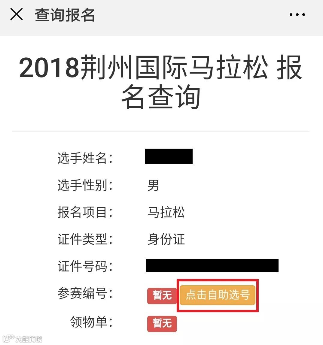 注:参赛选手若未在规定时间内选取号码,其参赛号码将由荆马组委会进行统一分配。