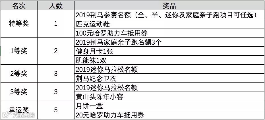 ▪ 第一名及第二名获胜队伍每位队员将会获得2019荆马参赛名额1个(项目可任选)