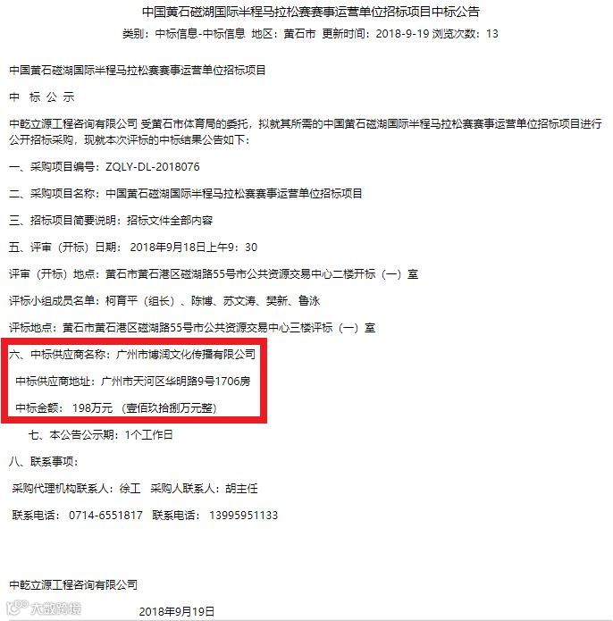 除此以外,广州市博润文化传播有限公司还获得2018金融街巽寮湾半程马拉松运营权。