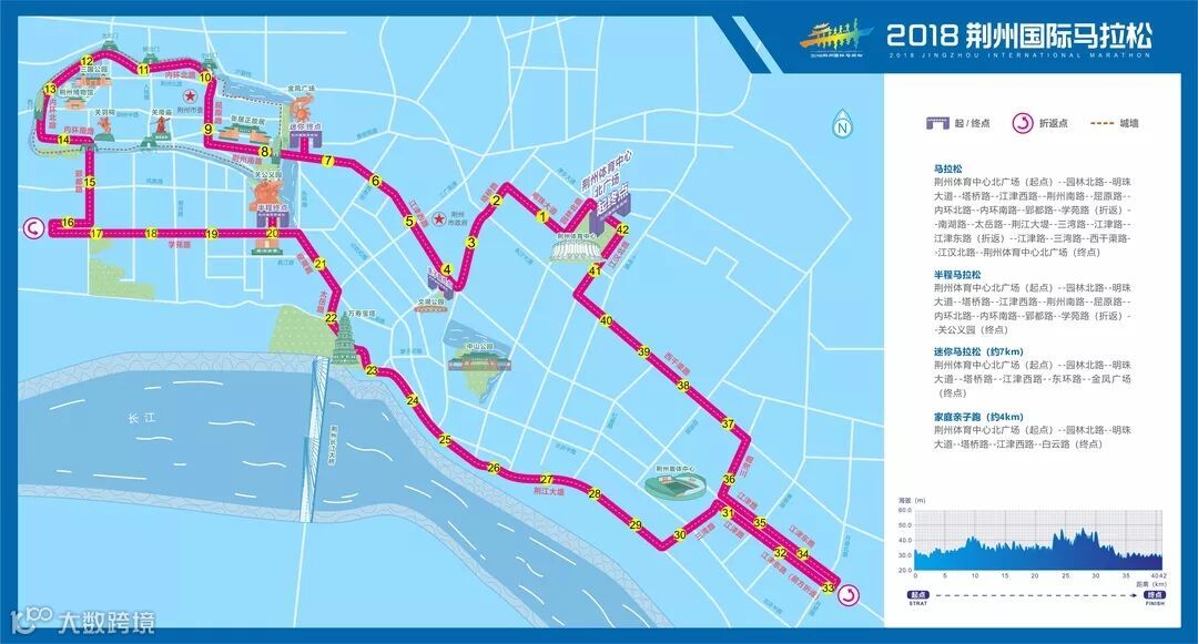 本次赛事各项目起点均设置在荆州体育中心北广场,且沿同一赛道进行设置,同时分散四个项目的终点,实现跑完即通行,最大程度上减少封路带来的交通压力,以解决参赛选手以及荆州市民的出行问题。
