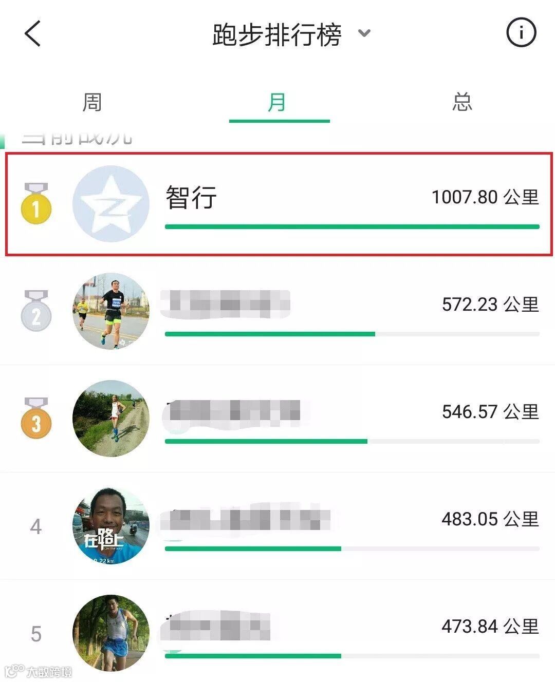 智行完成了月跑千公里的目标