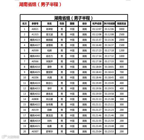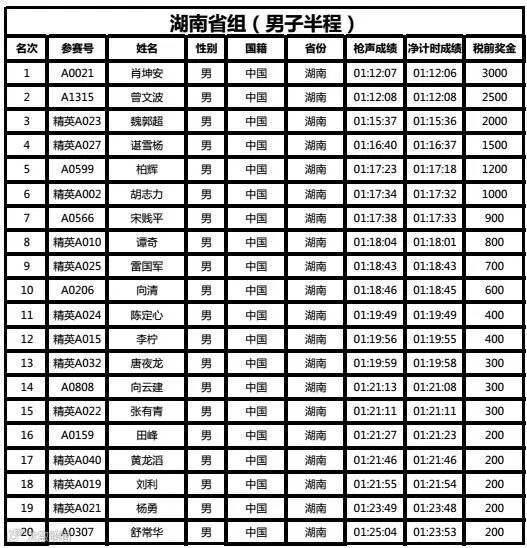 湖南省组(男子半程)