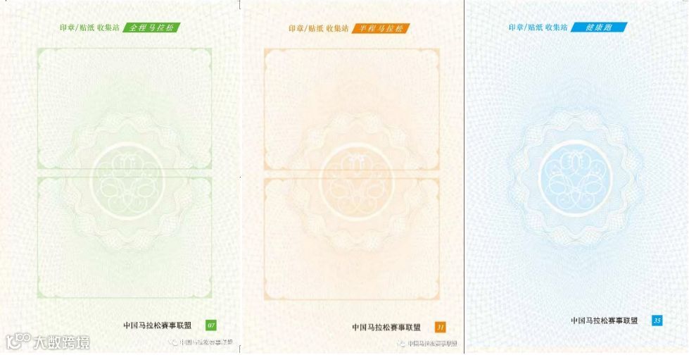 《中国马拉松护照》分为全马、半马、健康跑三类印章/贴纸收集站,使用者贴满相应参赛部分的贴纸后,可进行护照的更换。同时在您的电子版马拉松护照中也会同步相应的完赛贴纸或完赛印章。