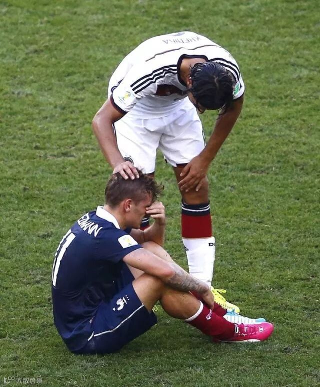 甚至哭到连对手德国队的球员也跑过来安慰他: