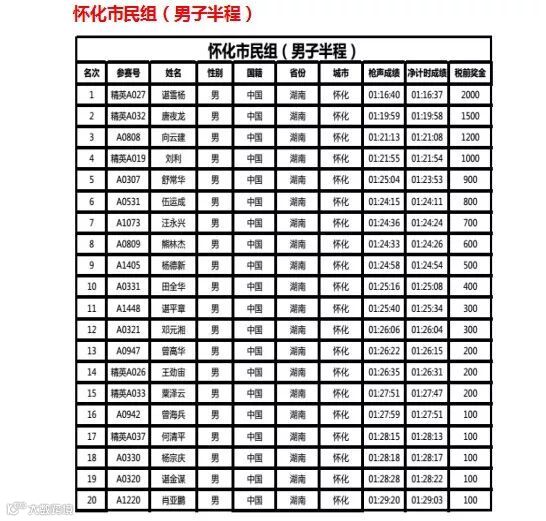 此外,上述奖金将按照本次赛事竞赛规程规定,征收20%个人所得税,由2018洪江黔阳古城国际半程马拉松组委会代收代缴。