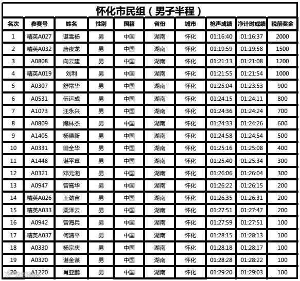 怀化市民组(男子半程)