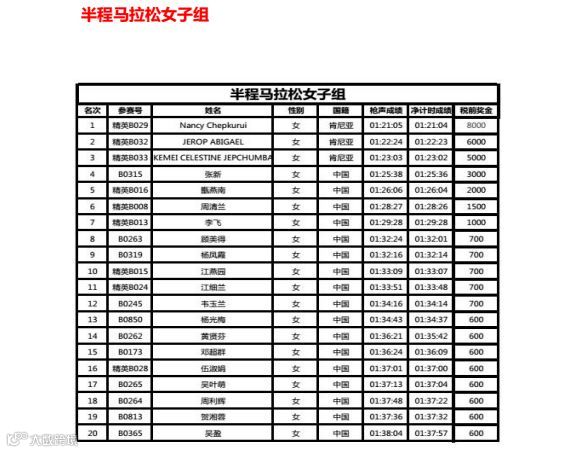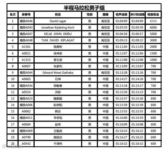 组别:男子半程马拉松