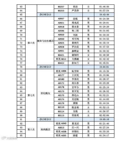 根据完赛成绩,奖励团体名单如下: