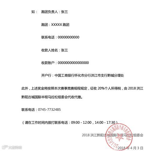 此外,上述奖金将按照本次赛事竞赛规程规定,征收20%个人所得税,由2018洪江黔阳古城国际半程马拉松组委会代收代缴。