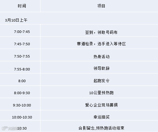 预热跑:2018年3月10日(星期六)8:00-10:30