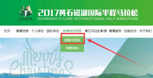 2、点击下拉菜单:参赛物资领取——参赛号查询