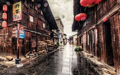 湿透了没有撑伞的古巷