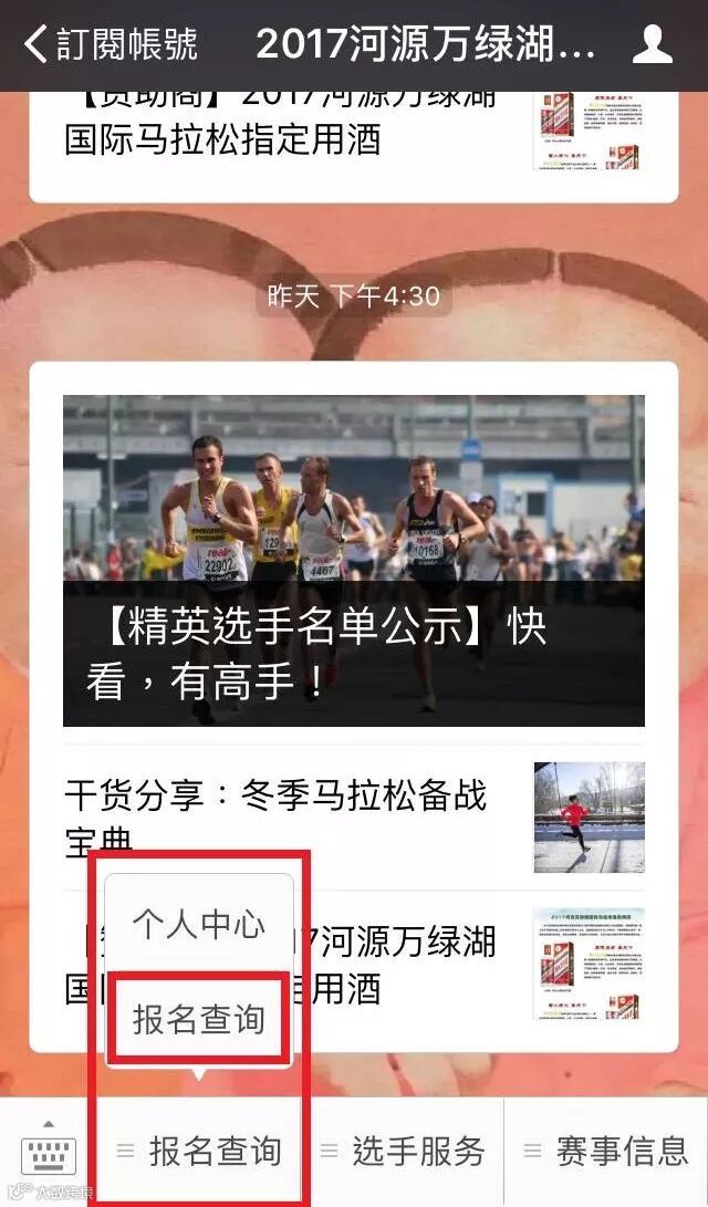 所有成功获得长鸿集团2017河源万绿湖国际马拉松参赛资格的选手,12月18日起可前往河马官网(http://www.heyuanmarathon.com/)或河马官微(2017河源万绿湖国际马拉松)查询您的参赛号码!