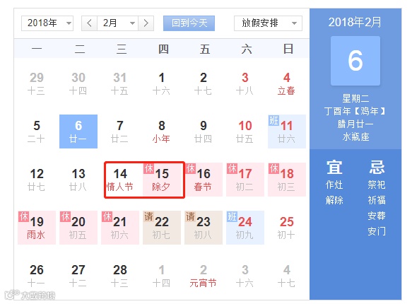 今年情人节是除夕的前一天