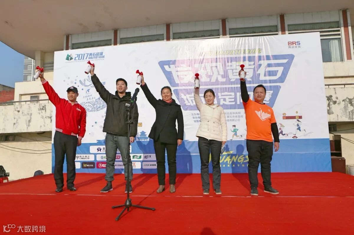 黄石市体育局副局长 鲁泳、黄石市体育局群体科科长 黄欣、博润体育赛事经理莫树全、黄石市金皇冠饼屋总经理杨嵩山、卤巧儿公司营销总监李金鑫为本次城市定向赛发令。