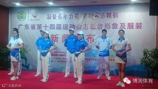此次省运会志愿者服装主要围绕着第十四届省运会“蓝色湛江、金色梦想”的主题,提取蓝、金两种颜色为主,并融入了蓝天和白云的形状。志愿者服装设计的上衣主体颜色取自于湛江湛蓝的天空,配合白色的裤子,构成一幅天蓝云白的图画,在一组柔美上升的线条中,展现了志愿者朝气蓬勃的的形象,不仅体现了此次省运会应有的动感,还表现了湛江人民热情好客的形象,而颁奖礼仪服的设计灵感则是在一组汹涌向前的波浪中,运用流畅的线条向我们描绘出一幅运动员在比赛场上奋勇向前的拼搏形象,一浪高过一浪的浪花更是表现出运动员们不断超越对手,超越自我的拼搏精神。