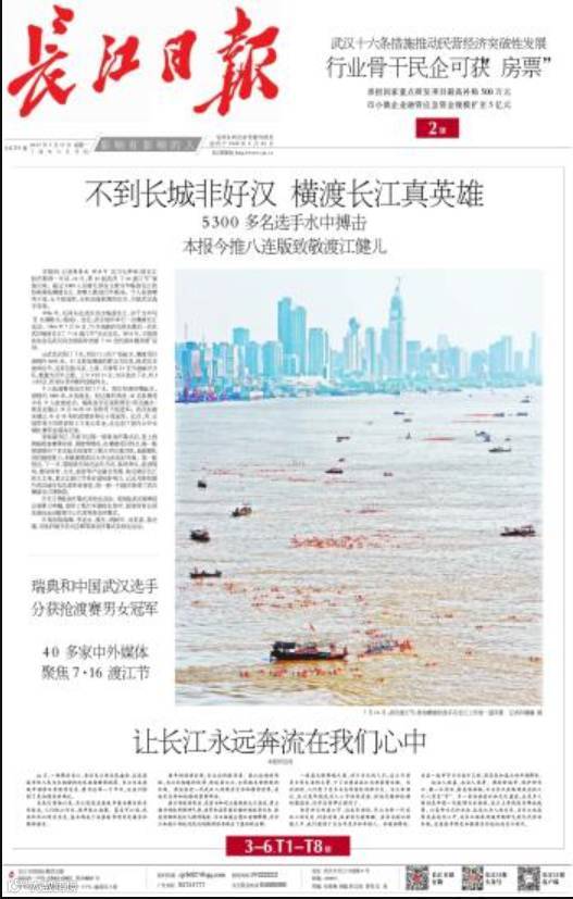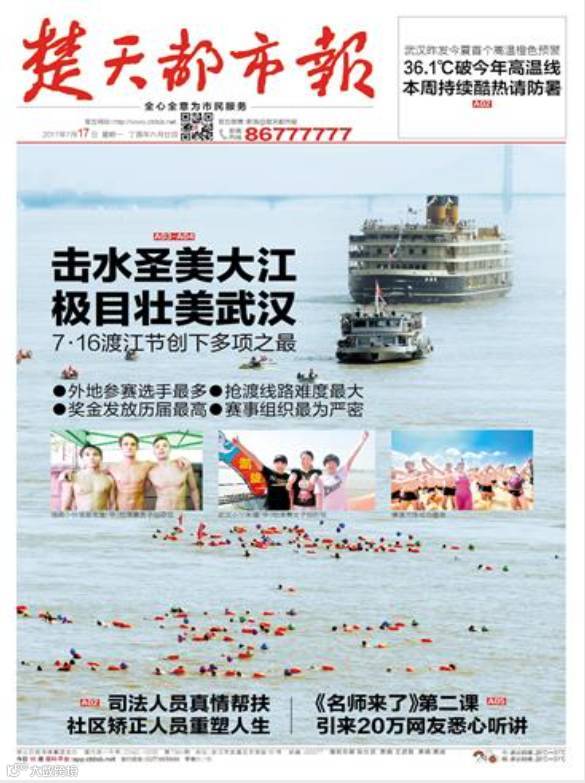 赛事当天,全国主流媒体争相报道,网友纷纷转发评论,引发了巨大的传播效应,使武汉的名字享誉全国。正是由于全方位、多角度、全媒体的覆盖宣传,将2017第43届武汉7·16渡江节这一盛事快速传播出去,收获了巨大的话题效应,引发了市民的高度关注。