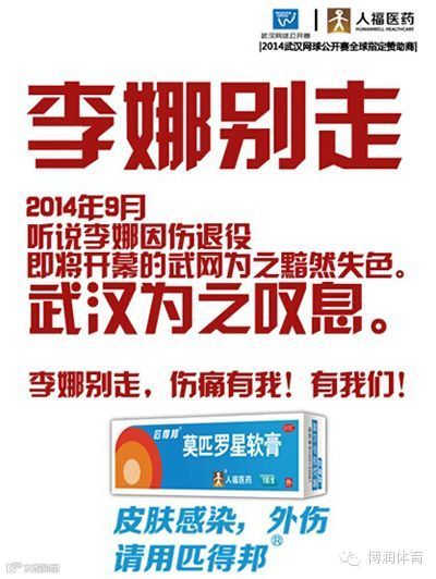 在武网开赛前一天,李娜退役的消息如大地惊雷般炸开,令所有人瞠目结舌,更令所有打算借势李娜营销的企业措手不及。而人福医药当机立断通过微博发布#李娜别走,伤痛有我#的匹得邦系列海报,率先说出全国人民的心声,此条微博得到了众多营销类大号的转载。