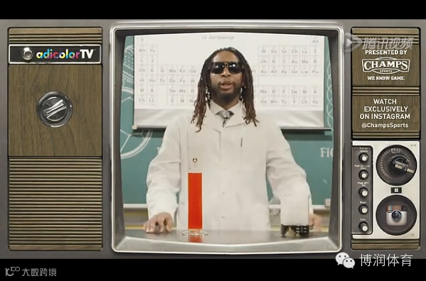 通过这些广告片可以看到,这些运动品牌并没有采用与体育相关的主题内容,而是以情景剧形式呈现,有些甚至仅仅是为了好玩而已。比如橄榄球明星穿着阿迪达斯的运动装,或者说唱歌手李尔•韦恩扮成高中老师的模样站在元素周期表的背景墙前。