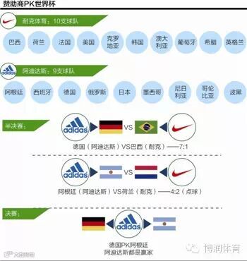 而这两场半决赛,也都可看作是耐克和阿迪达斯之间的对决。最终,耐克在世界杯上的赞助就此止步,而阿迪达斯球队胜利会师7月13日晚(当地时间)阿根廷VS德国的决赛。
