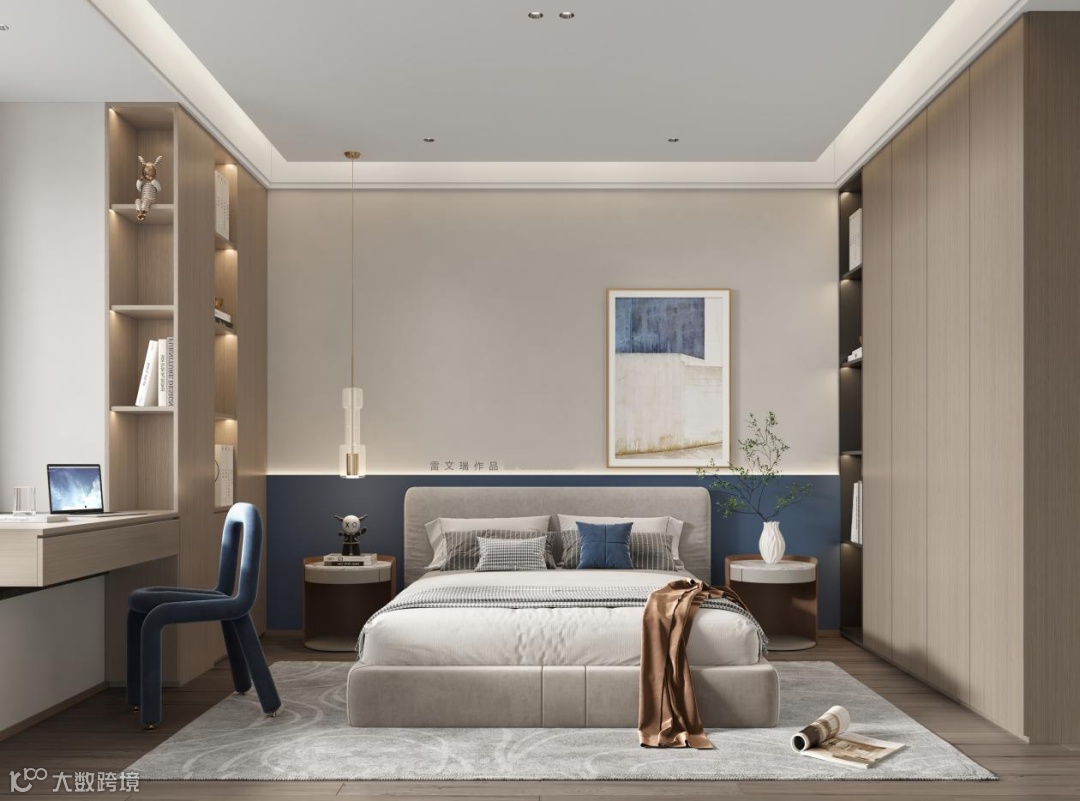 主色,以浅蓝色为点缀,在木调的延续中,于整个案例优雅的气息中加入充满活力的因子,更符合成长中孩童的节奏感,活泼而灵动。