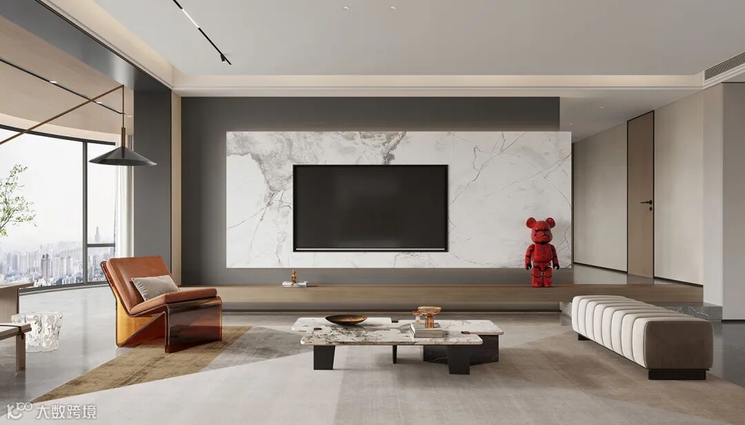 电视墙选用白色大理石作为背景,具有自然色彩、隔音、道路、阻燃等特点,在视野中呈现着大气,舒适的高级感。最大程度上让房子的空间视野更为开阔,同时也可以保证采光充足。