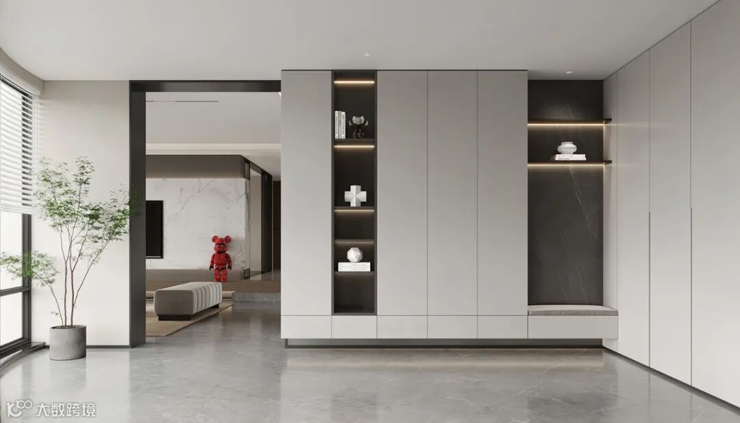 玄关作为每个人家中的“交通要道”,同时也是给人留下印象的地方。别看这块区域好像很不起眼,大容量收容物品的储物高柜高颜值且实用。其实,它不仅关乎颜值,还是业主生活层次、家居品味的折射。