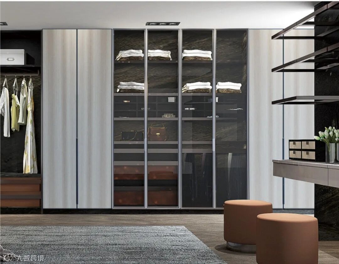 衣帽间采用玻璃柜防尘