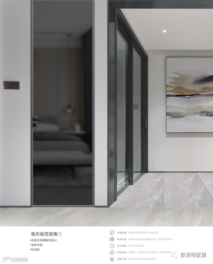 奇亚特把产品当成一种艺术,融合简约的艺术精髓和严谨的工匠精神,以人为本的人体工学设计,以舒适为核心的优化定制。全面提升静音、空间、安全、品质、节能等室内门综合性能,开启高端空间定制时代,带来不一样的体验。