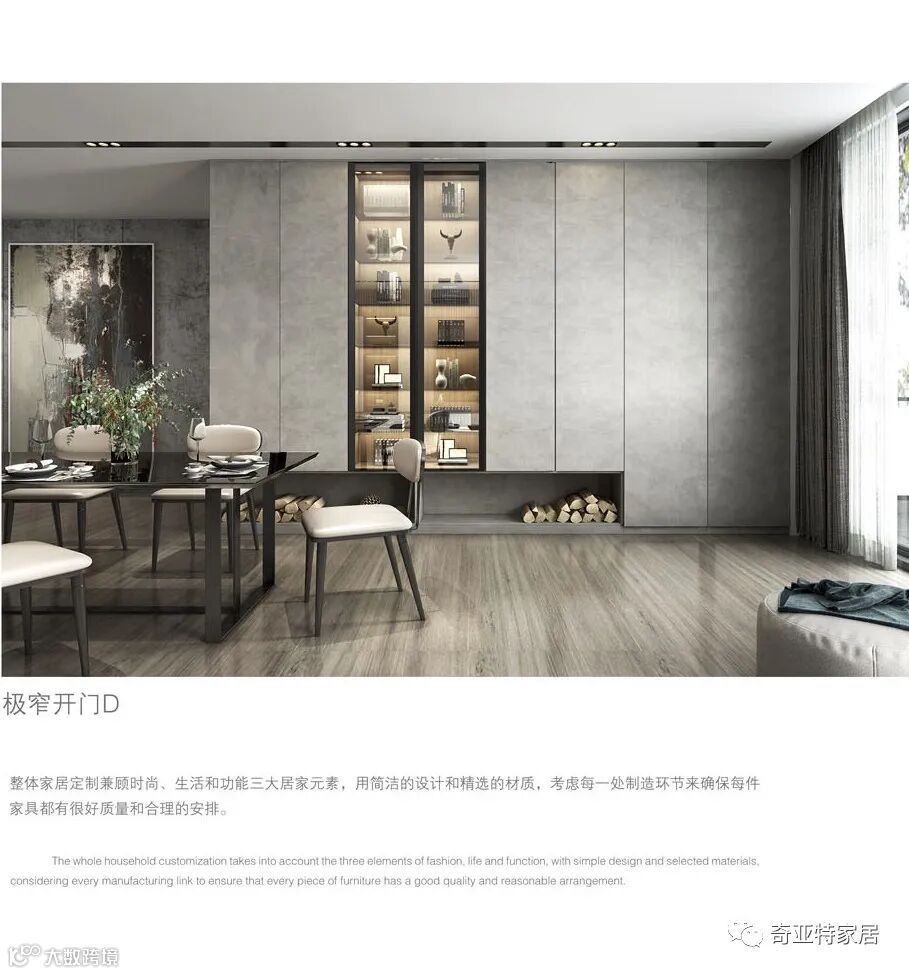 奇亚特家居,专业生产室内门十多年,现旗下有专卖品牌:“法铂特”极简定制! 公司产品有:极简开门移门、极简室内门、极简玻璃室内门、极简隔断吊门、护墙、哑口套、板式柜体、金属柜、联动门、旋转门、磁悬浮自动门等高端室内产品。