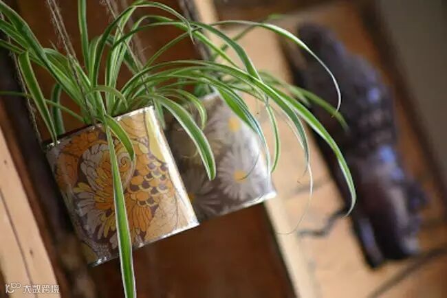 生活中偶尔会买到一些罐装的东西,例如油漆之类的,只要彻底清洗干净即可当成花盆来栽种植物,不过为了美观,建议最好稍微多花一点时间改造一下罐子的外貌,如果可以的话,在罐子两旁钻个孔,然后用绳子穿起来挂在墻上会更漂亮哦!