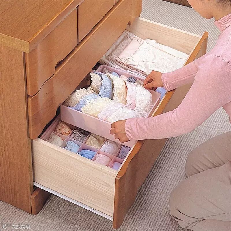 如果用不惯刚刚介绍的那款挂式的内衣收纳,那就试试看收纳盒式的吧,更加干净卫生,因为多了一个可盖的盖子,也可以隐藏的放在衣柜或者抽屉里面。