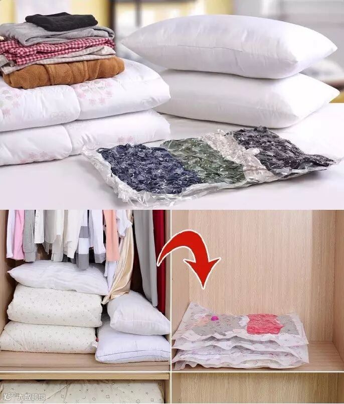 满满一大袋子看着被抽气泵压缩成薄薄的一个,收纳换季的衣物和被子特别适合。
