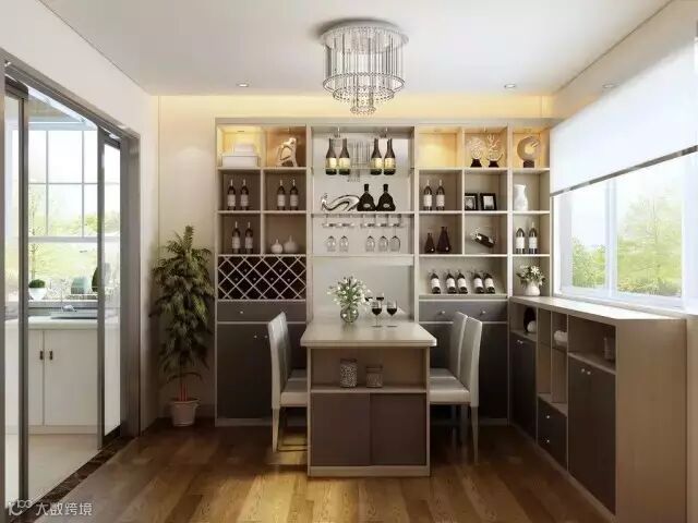 现在的年轻一代对生活品质的追求是越来越高,家装酒柜吧台已成为了常事。酒柜在整个餐厅中显得轻奢时尚,酒柜上陈列着各种珍藏酒、酒杯、装饰物使得酒柜丰富多彩。