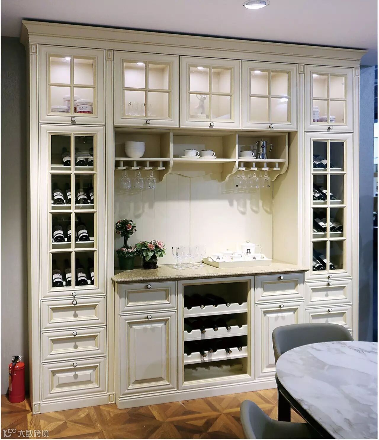 半开放半封闭的餐酒柜使收纳方式更多样化,满足各式需求。
