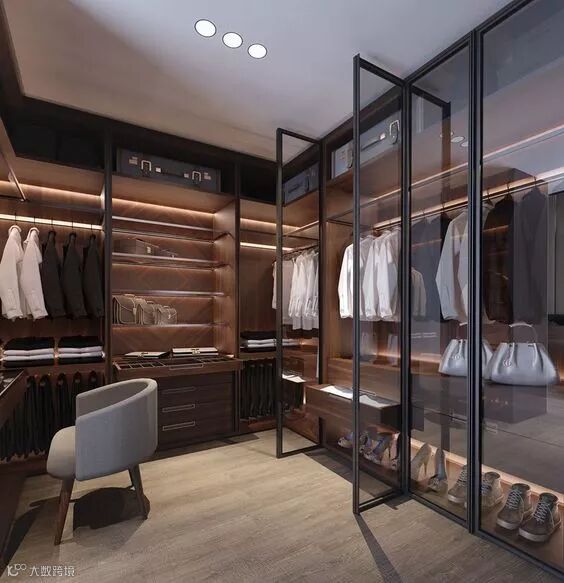 整体风格大气成熟的衣帽间,所以那些色彩深沉、线条简洁的步入式衣帽间在他们这里倍受青睐。