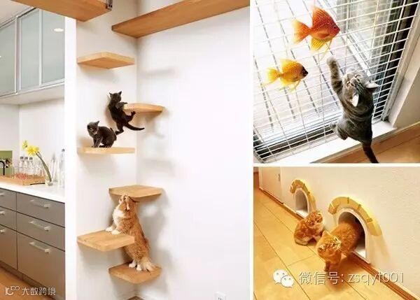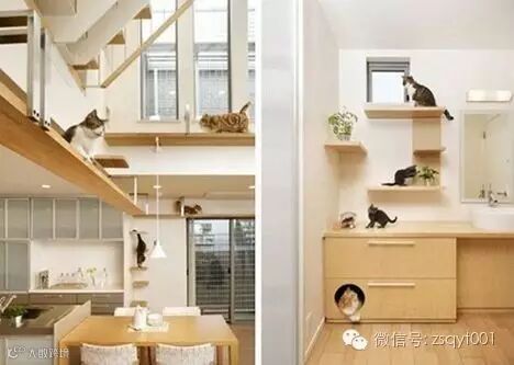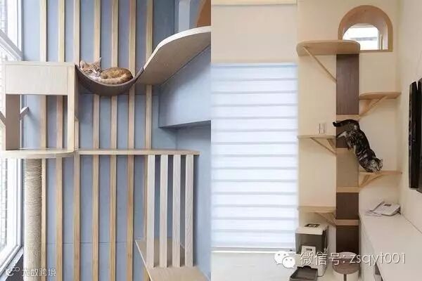房梁、墙角、楼梯、橱柜都可以利用起来,只需要小小的空间,就能满足它们顽皮的习性。