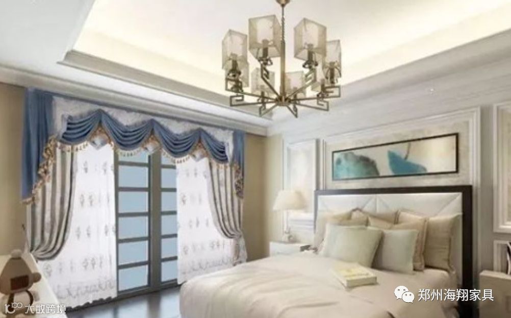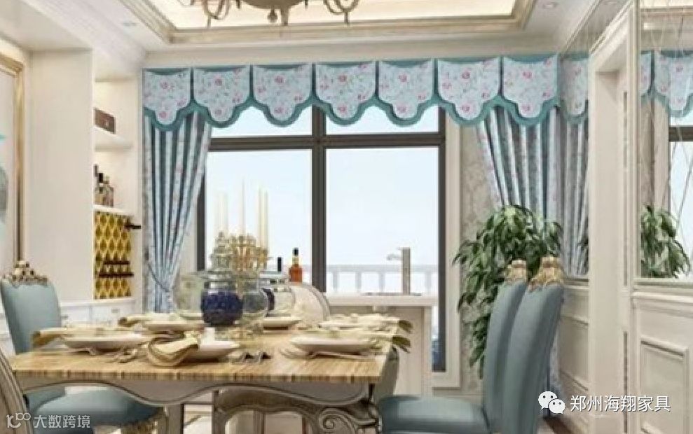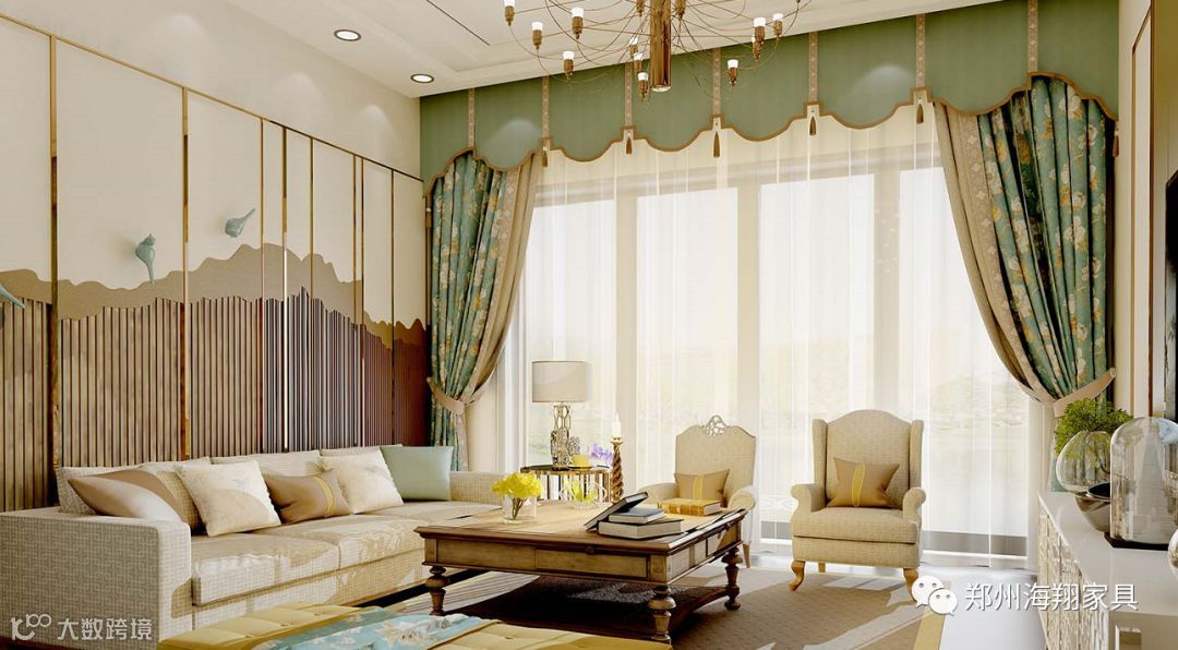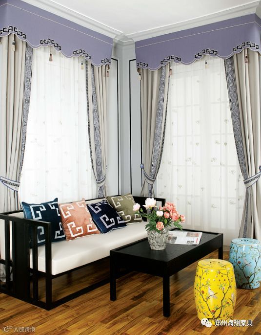 新中式风格讲究对称、方圆,在帘头设计上也追求简单大气,对称、规矩。