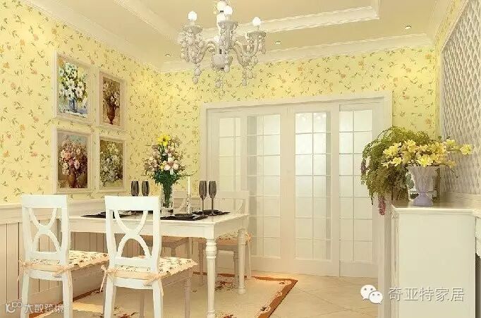 明黄色的餐厅,加上漂亮的隔断门,是不是更温暖了?