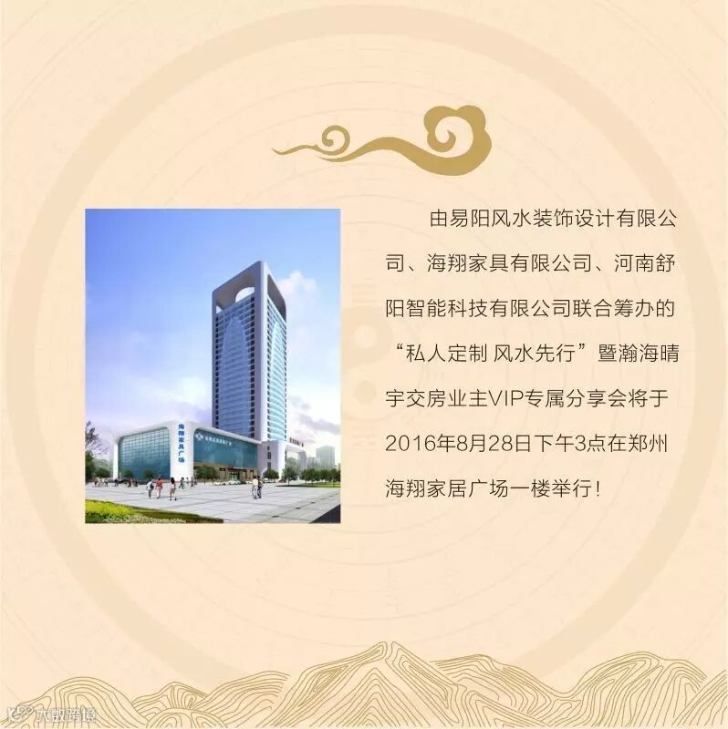 易阳风水装饰联合海翔家具和舒阳智能举办“私人订制,风水先行”公开课,欢迎您参加。为您定制专属的家装设计方案,参与即送定制礼品。