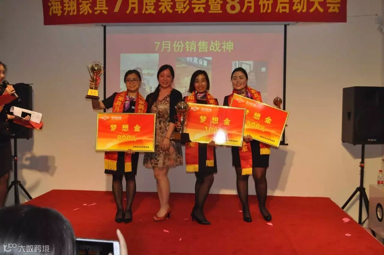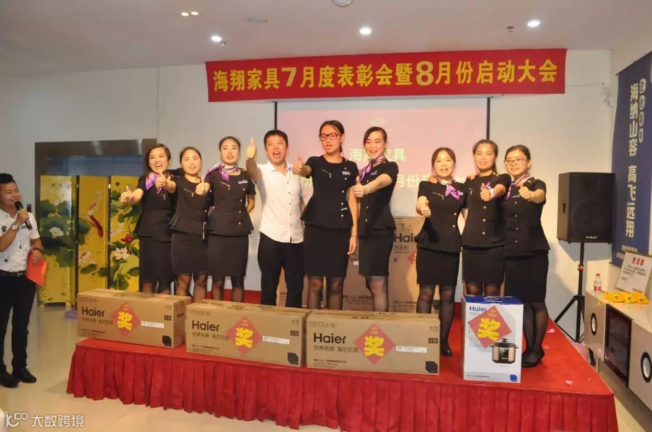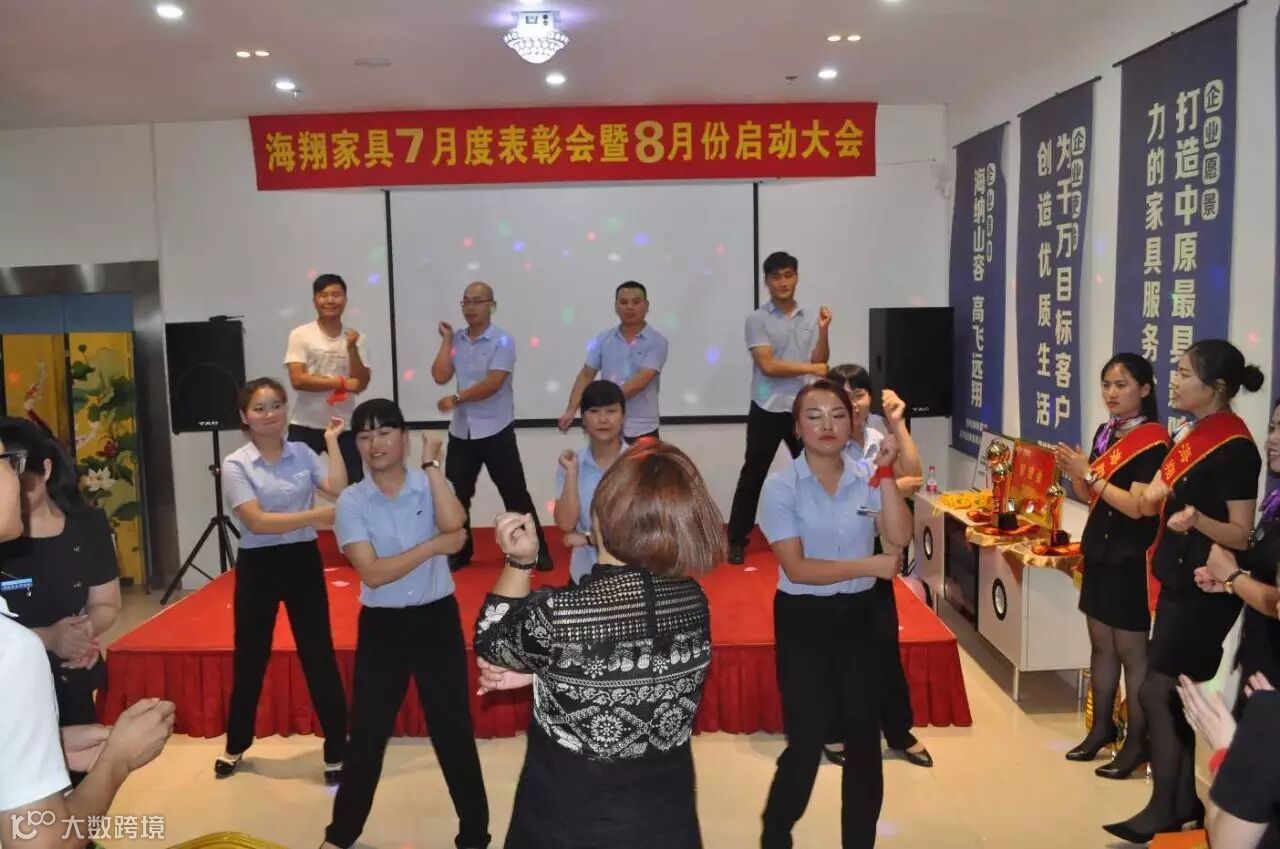8月3日下午7点正“海翔家具7月度表彰会暨8月份启动大会正式拉开帷幕,现场气氛十分火爆。海翔所有员工齐聚一堂,分为6个小组并要做小组展示,最精彩的还要数舞王舞后的争夺,各组队员使出浑身解数争夺荣誉!公司为6份7月份的销售前三名进行颁奖发放梦想金,并且现场全体员工对8月份业绩作出承诺,只有有了目标才能更好更快的往前冲。民用家具寇总经理亲自上台为业绩突出和作出贡献的员工进行红包的发放。在启动会当天有3位海翔员工过生日,公司特意准备了蛋糕,现场给员工了一个惊喜!启动会的圆满成功是公司领导和公司玖零落地委辛劳付出的成果。启动会举办之前他们每天下班都会进行彩排、制定方案,以应对各种情况,确保各个环节的顺利进行!海翔家具-优秀品牌家具运营企业!这不是一句空话,努力做到,成为标杆!选择我们就是相信我们,既然您相信我们,我们就不会让您失望!
