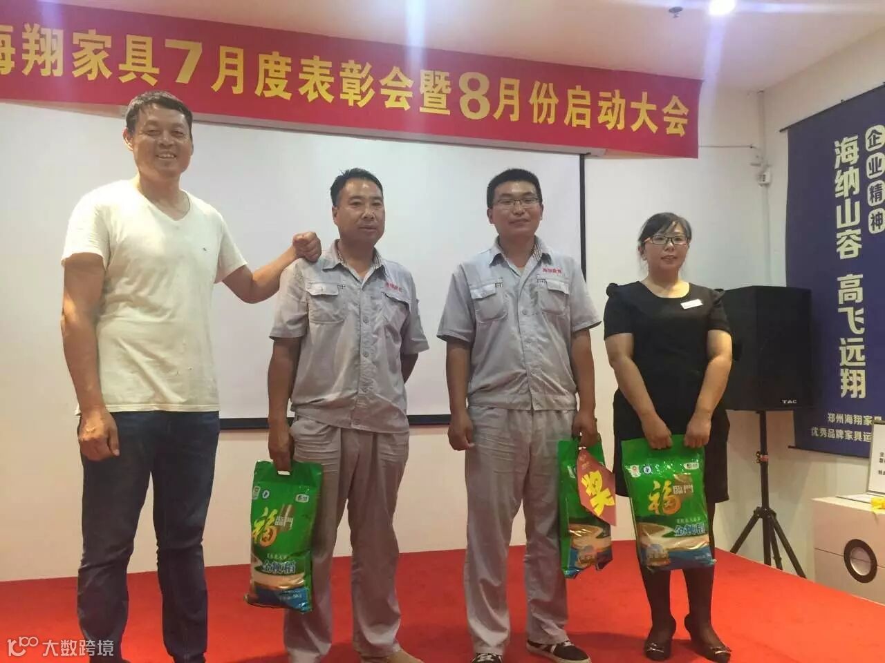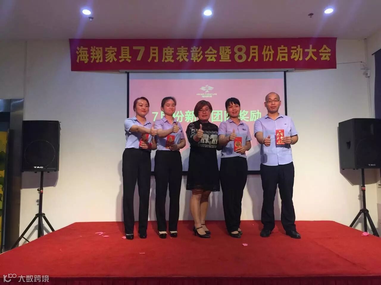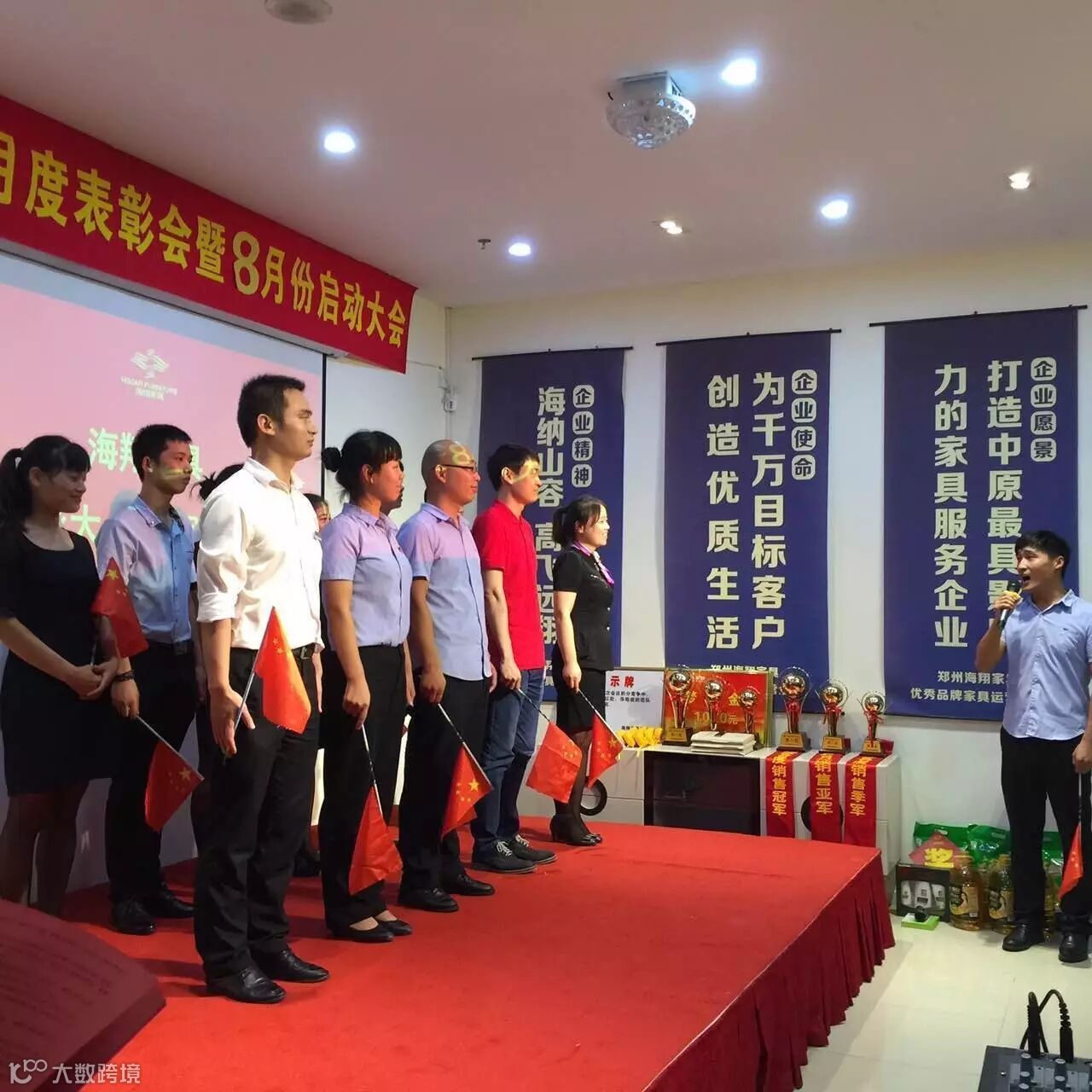 8月3日下午7点正“海翔家具7月度表彰会暨8月份启动大会正式拉开帷幕,现场气氛十分火爆。海翔所有员工齐聚一堂,分为6个小组并要做小组展示,最精彩的还要数舞王舞后的争夺,各组队员使出浑身解数争夺荣誉!公司为6份7月份的销售前三名进行颁奖发放梦想金,并且现场全体员工对8月份业绩作出承诺,只有有了目标才能更好更快的往前冲。民用家具寇总经理亲自上台为业绩突出和作出贡献的员工进行红包的发放。在启动会当天有3位海翔员工过生日,公司特意准备了蛋糕,现场给员工了一个惊喜!启动会的圆满成功是公司领导和公司玖零落地委辛劳付出的成果。启动会举办之前他们每天下班都会进行彩排、制定方案,以应对各种情况,确保各个环节的顺利进行!海翔家具-优秀品牌家具运营企业!这不是一句空话,努力做到,成为标杆!选择我们就是相信我们,既然您相信我们,我们就不会让您失望!