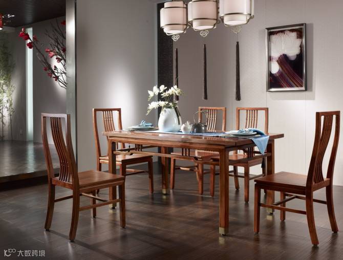 这款餐桌由明式案几演化而来,牙板线性成曲,与直线条的桌腿曲直错落有致。说到案几就让我们很容易联系到“举案齐眉”的典故,设计者如此设计,寄予了对您家庭和睦、和美温馨美好祝愿。餐椅靠背面与椅腿均似流水般柔美婉约,从人体工程学角度出发,让您的腰背得到了很好的放松,也意喻家人、夫妻、朋友间情谊长久。