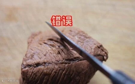 记住一句话:横切牛羊,竖切猪,斜切鸡。猪肉的肉质比较嫩,肉中筋少,顺着切就可以了。牛肉质老(即纤维组织),筋多(即结缔组织多),必须横着纤维纹路切,即顶着肌肉的纹路切(又称为顶刀切),才能把筋切断,以便于烹制适口菜肴。如果顺着纹路切,筋腱会保留下来,烧熟后肉质柴艮,咀嚼不烂。鸡肉和兔肉最细嫩,肉中几乎没有筋络,必须斜顺着纤维纹路切,加热后,才能保持菜肴的形态整齐美观,否则加热后,菜肴会变成粒屑状。