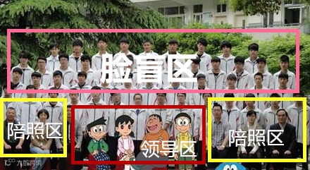 这个区域靠近领导区,要么是学校的风云人物,要么是老师的得意门生,总之必须是风生水起过,才会在拍照时大大方方站在这个位子上。金麟岂是池中物,一遇风云便化龙,站过此位的人日后也会人缘广结。
