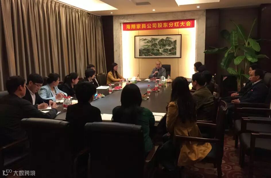 2015年5月10日,海翔家具2014年度股东分红大会在中博家具中心海翔家具独立楼圆满举行,近30名海翔家具股东参会参与分红,其乐融融。