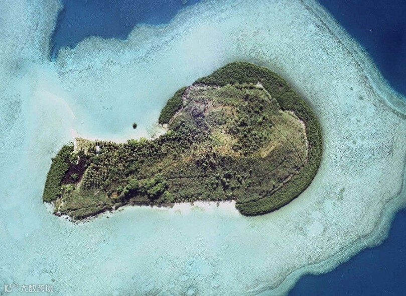 抬头仰望天空,形态各异的云朵可曾给你无限遐想,这一切都不得不归功于地球上大自然的鬼斧神工。其实,在汪洋大海之中,众多岛屿也在时间的淋洗下呈现出炫酷造型,从高空看去,令人惊叹。图1,爱妮岛是巴拉旺群岛最北部地区的一片岛屿,其神似一座屹立在大海中的直升机,高耸的悬崖构成了机舱,而茂密向后延伸的热带雨林则完美地搭建了一个天然机尾。
