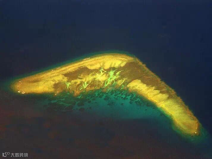 回旋镖岛,外形酷似一只回旋镖,南沙群岛之一,深蓝的大洋中金色的存在,超过750个小珊瑚礁散落分布。