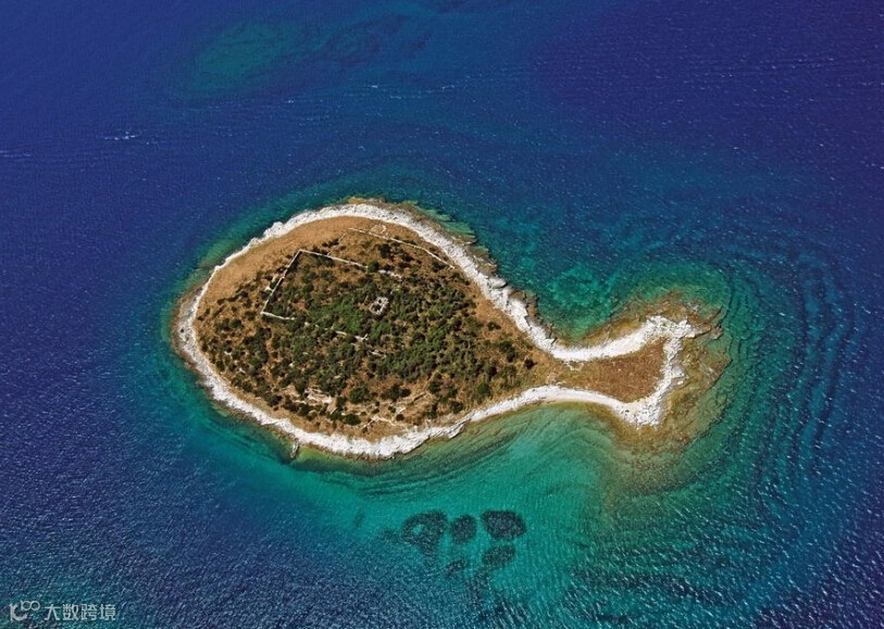 克罗埃西亚鱼岛,是重要的考古和文化遗址,其中一个岛上曾发现200个恐龙脚印,从空中看去,我们小时候吃的鱼饼干不正是这样的吗?