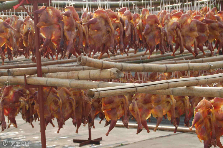 做风干鸡,需要一定的手法,而且速度必须非常快。这是道藏菜,大师以极快的速度拔毛、取脏、填调料入鸡腹、缝合、挂于通风处。注意,在这所有步骤之前,并未放血将鸡杀死,也就是说这时鸡还是活的,然后如风铃一般在风雪之中“咕咕”直叫......